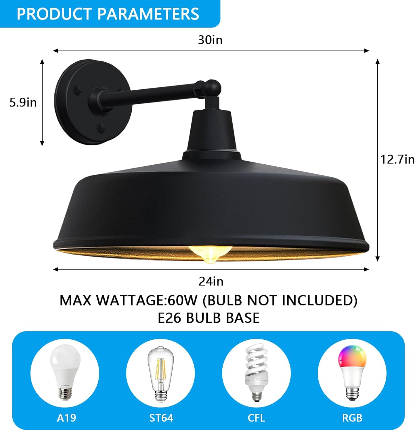 Modern Straight Arm Style – Features a clean straight arm and wide shade for a bold farmhouse look.