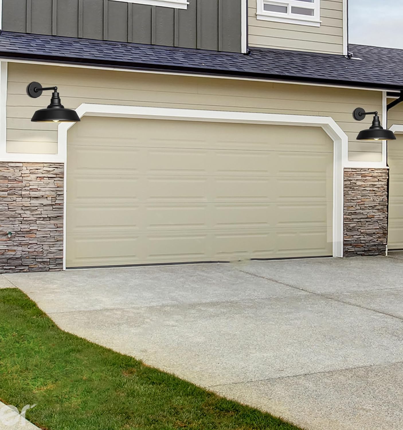 These barn lights are fantastic! The quality is top-notch — sturdy metal construction with a nice matte black finish. I installed both on either side of my garage and they give off the perfect amount of light. The design has a timeless, classic look that adds so much curb appeal. Great value for a 2-pack!