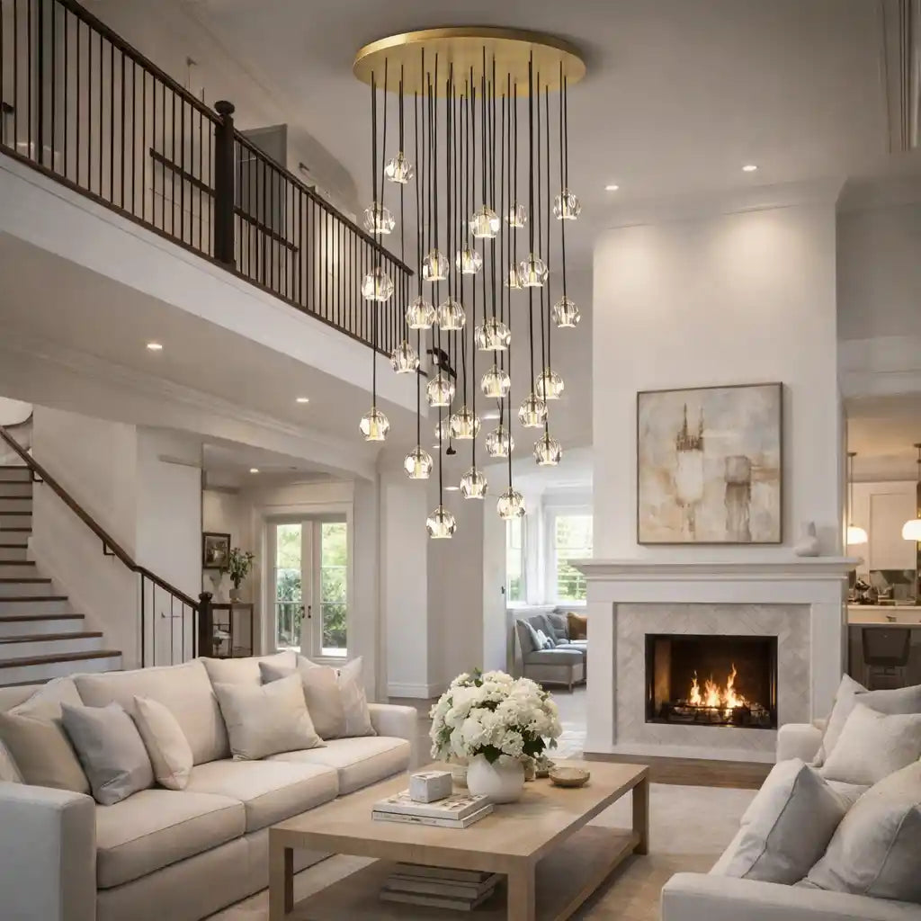 Each exquisite K9 crystal ball combines high-quality copper elements to show luxury. Each K9 crystal ball is carefully cut by workers with many years of manual experience. Ceilings and fittings are made of solid brass. The irregular cut surface of the crystal ball reflects a lot of warm light. It highlights the elegance and temperament of this chandelier.
