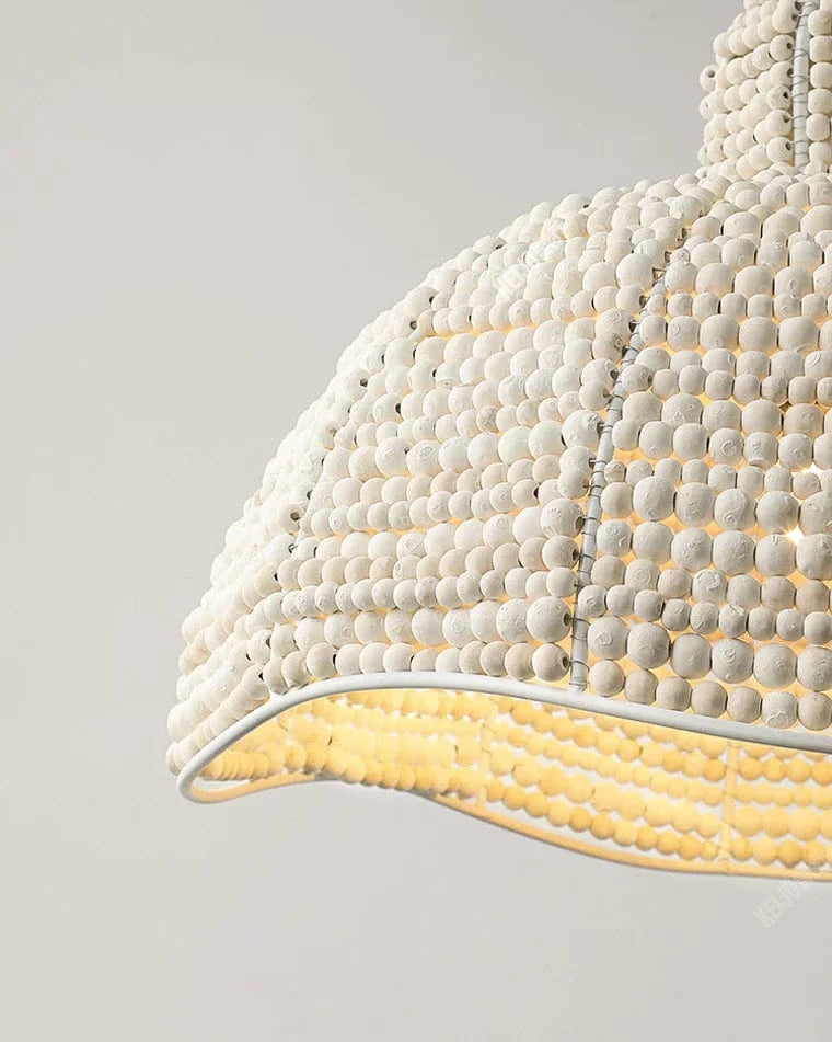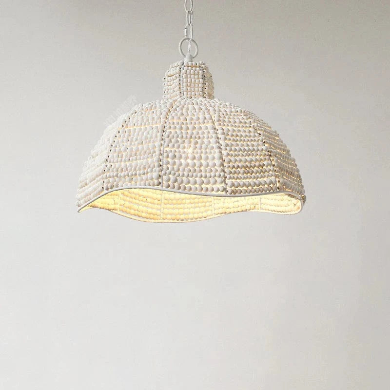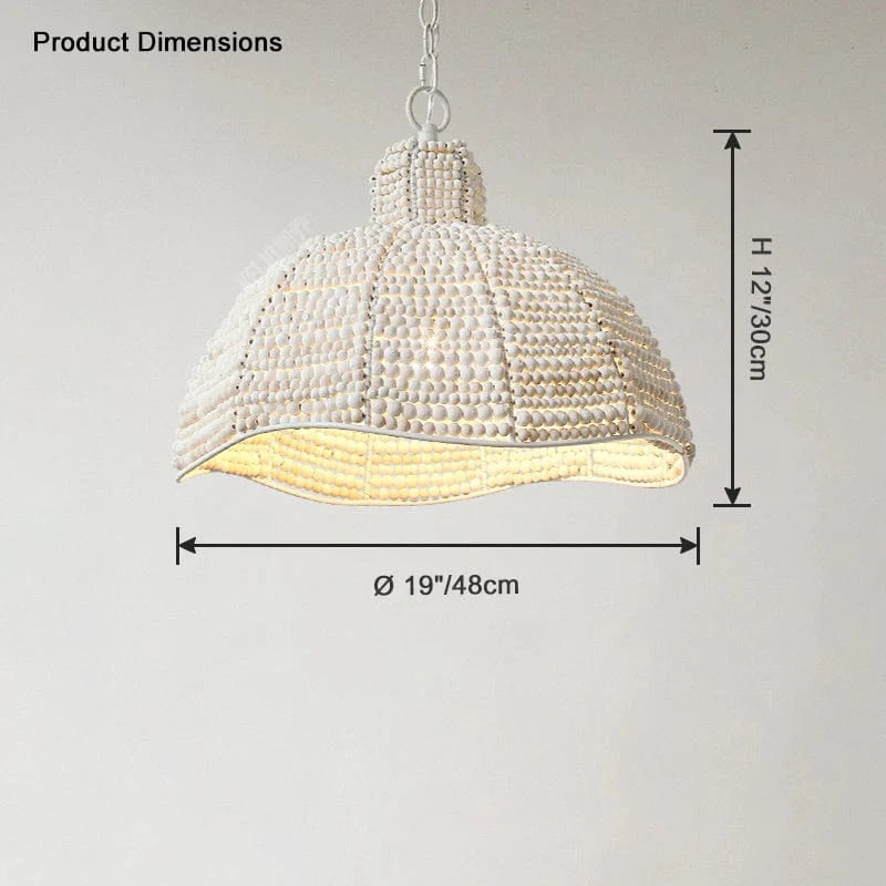 Crafted with a charming blend of white and wood beads, this unique pendant light adds a touch of boho to your bedroom or kitchen. Transform any room into a cozy oasis with this stylish and versatile lighting fixture.
